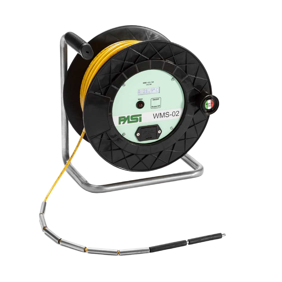 Indicador de nível de água e temperatura com cabo redondo, quatro f ios de cobre, núcleo de kevlar e película protetora externa anti-riscos em PUR transparente. Graduação em centímetros impressos em